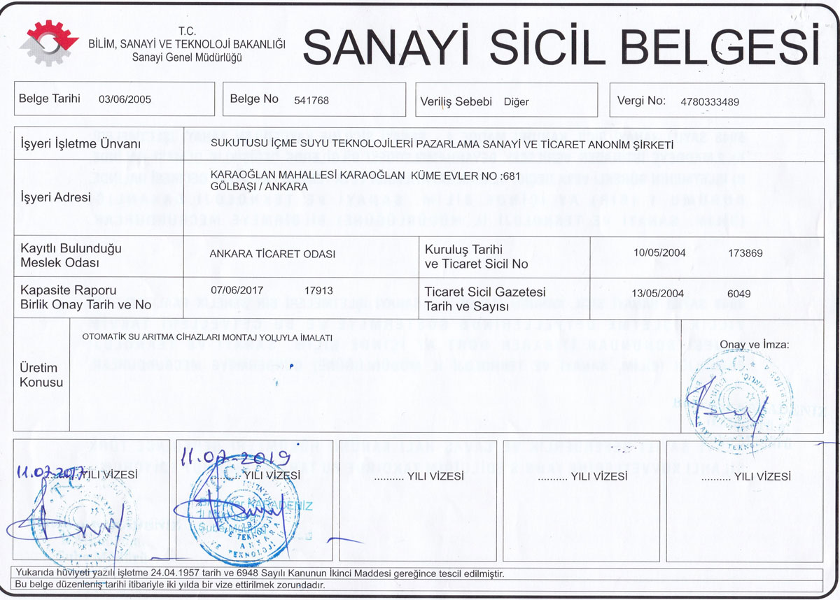 SUKUTUSU A.Ş., sağlıklı içme suyu ihtiyacını karşılayan ileri teknoloji su arıtma makineleri geliştirmek, üretmek ve tanıtmak misyonuyla 2002 yılında Ankara’da, yüzde yüz yerli sermayeyle kurulmuştur. Hedef pazarında sadece yurt içi değil, tüm dünya ülkeleri olan firmamız, WATERBOX-SUKUTUSU markasını tescil ettirerek çalışmalarına başlamıştır.